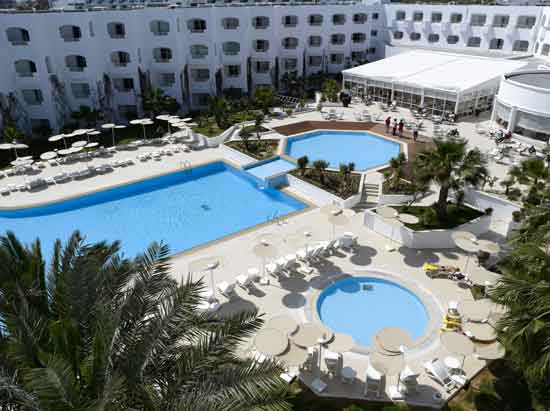 243 chambres spacieuses et confortables avec balcon donnant sur la mer ou la piscine. Elles sont toutes climatisées et équipées de TV satellite, téléphone, Mini Frigo à la demande (payant). , salle de bain avec sèche cheveux. Restauration : Repas servis sous forme de buffet présentant une cuisine tunisienne et internationale. Restaurant à la carte. Barbecue au bord de la piscine en été. A votre service : Bar, bar piscine, discothèque, programme d’animation pour les soirées. Piscine extérieure et intérieure, hammam, salle de musculation. Salon de beauté Thalgo et de coiffure Jacques Dessange.